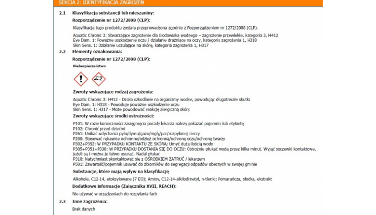 - Sporządź roztwór roboczy z ciepłą wodą ok.40°C wg. zaleceń powyżej.