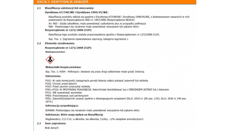 Nie pozostawia tłustego nalotu, wolno odparowuje i w przeciwieństwie do innych środków, nie zawiera toksycznych węglowodorów aromatycznych.