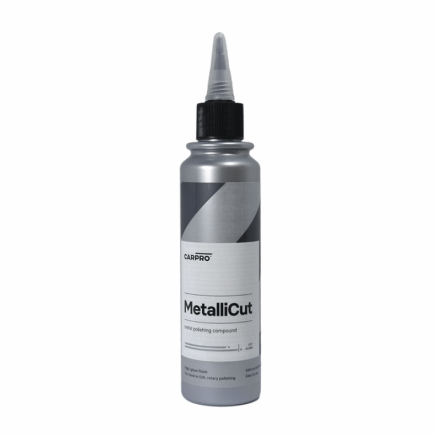 CarPro MetalliCut – to produkt opracowany w celu uzyskania wysokiego połysku na każdego rodzaju metalu. Formuła produktu to połączenie diamentowych cząsteczek i zmniejszających się cząsteczek ściernych, która pozwala w krótkim czasie uzyskać wykończenie na wysoki połysk. MetalliCut idealnie nadaje się do końcówek wydechowych, chromowanych felg, zderzaków i listew. Szybko i skutecznie przywraca fabryczny połysk elementom ze stali nierdzewnej, aluminium i chromu.